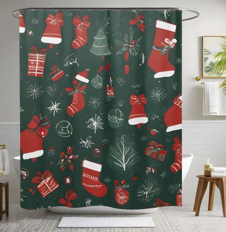 Deck the halls and your bathroom with this festive Christmas shower curtain.