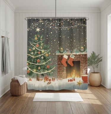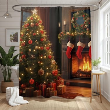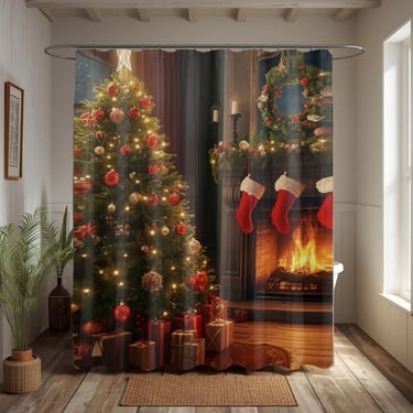Classic Cozy Fireplace & Christmas Tree Shower Curtain