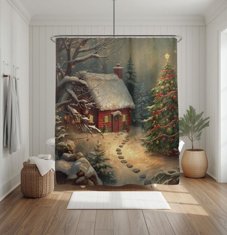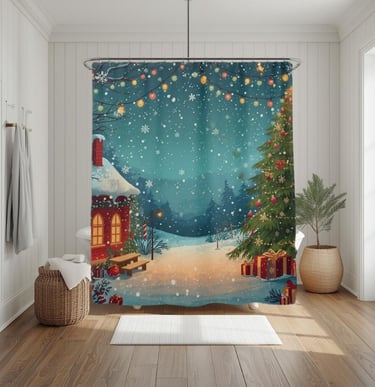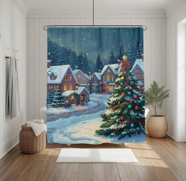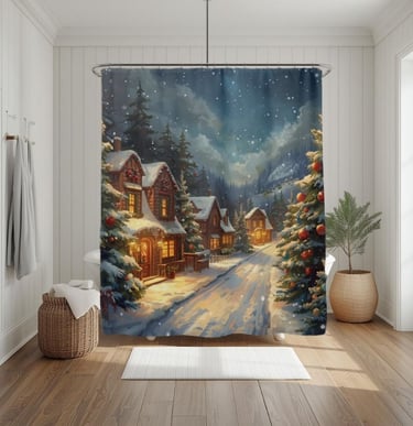 Wrap your bathroom in the tranquil beauty of a winter wonderland with this gorgeous Watercolor Snowy Village Christmas Shower Curtain.