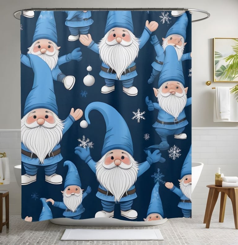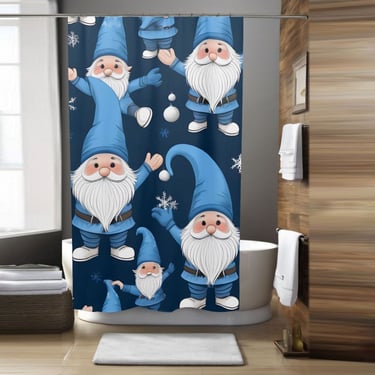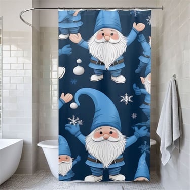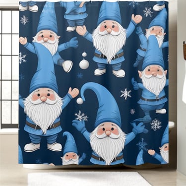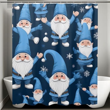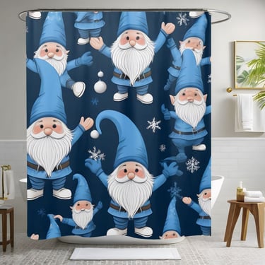 Cute Blue Christmas Gnomes Dwarfs Holiday Shower Curtain