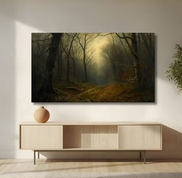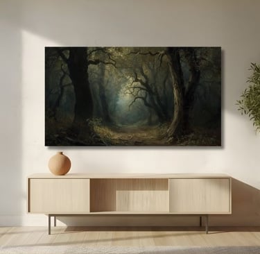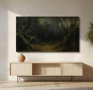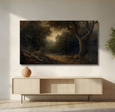 Enchanted Dark Forest Wall Art | Moody Vintage Woodland Oil Painting