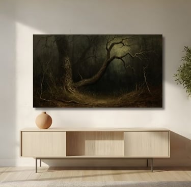 Dark Gothic Forest Wall Art | Gnarled Moody Tree Oil Painting