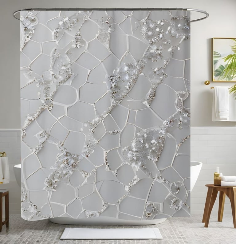 Our Elegant Sparkling White Sequin Shower Curtain in classic white is a versatile addition that complements any bathroom style.