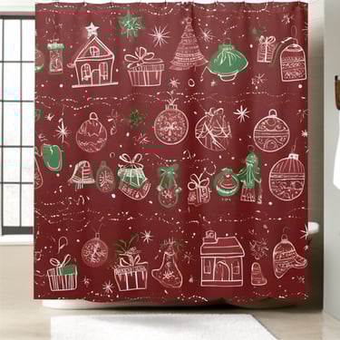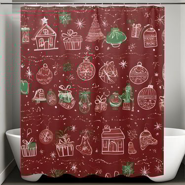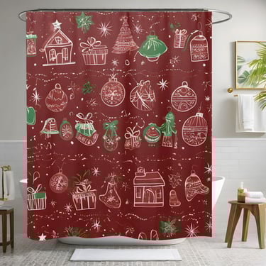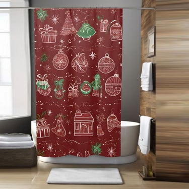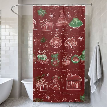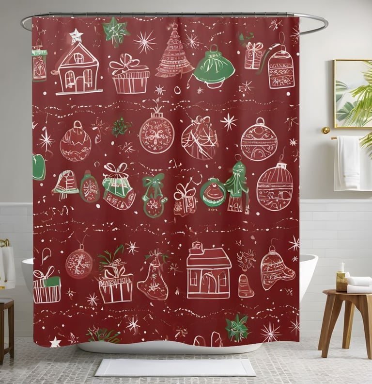 A unique, vintage-style Christmas shower curtain to elevate your seasonal decor.