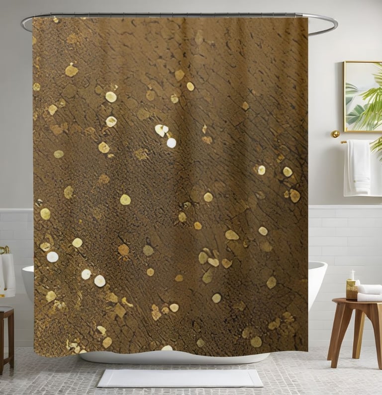 Create a warm and inviting atmosphere in your bathroom with our Gold and Brown Sequin Shower Curtain.