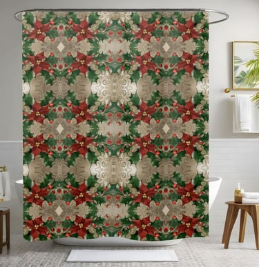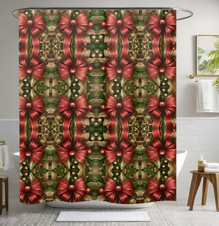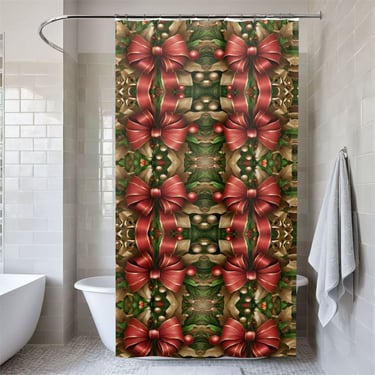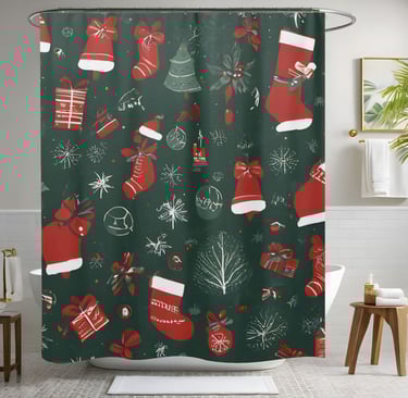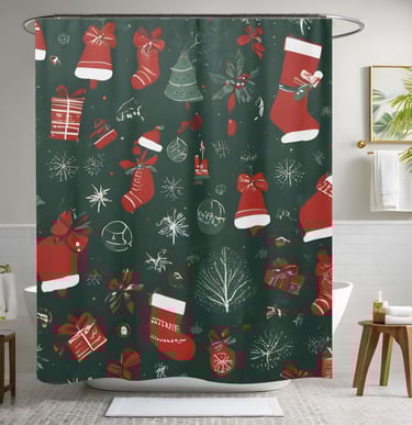 Decorate your bathroom for the season with this luxurious Christmas shower curtain.