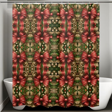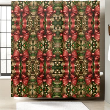 Modern Festive Christmas Bows Garland Holiday Shower Curtain