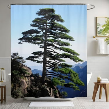 Mountainside Wildlife Adventure Pine Tree Shower Curtain