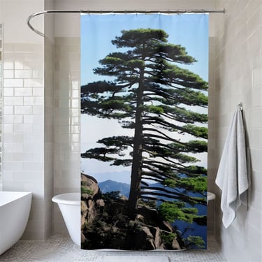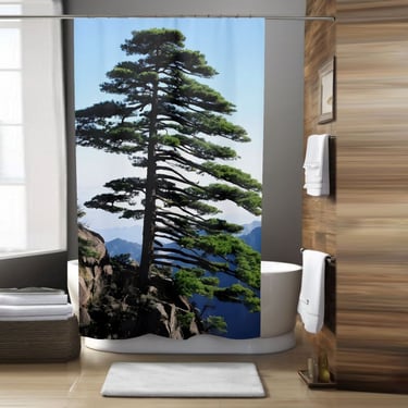 Experience the raw beauty of a mountainside teeming with life with this scenic shower curtain.