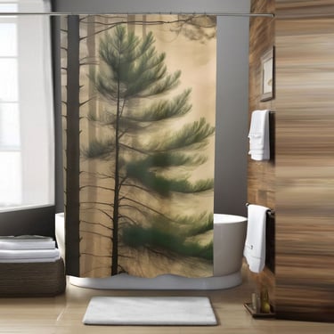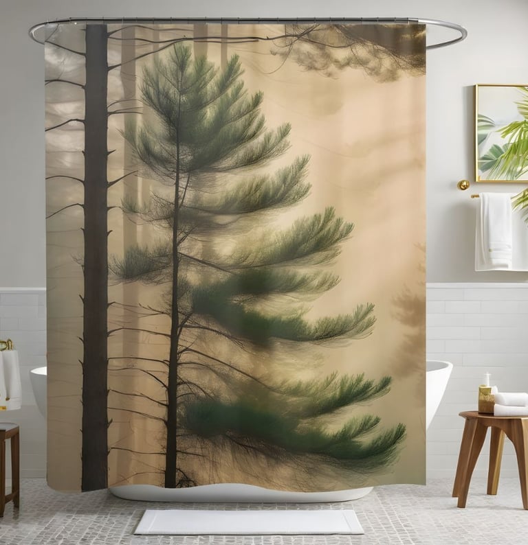 Peaceful Nature Pine Tree Foggy Jungle Shower Curtain