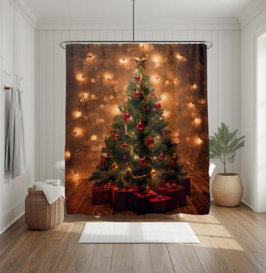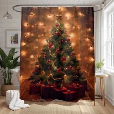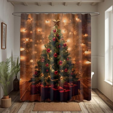 Rustic Christmas Tree Shower Curtain