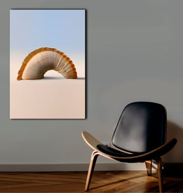 A minimalist masterpiece featuring a stunning, curled seashell. This unique Giclée print brings the calming essence of the ocean to any living space. Perfect for beach house decor, coastal themes, or a serene, modern aesthetic.