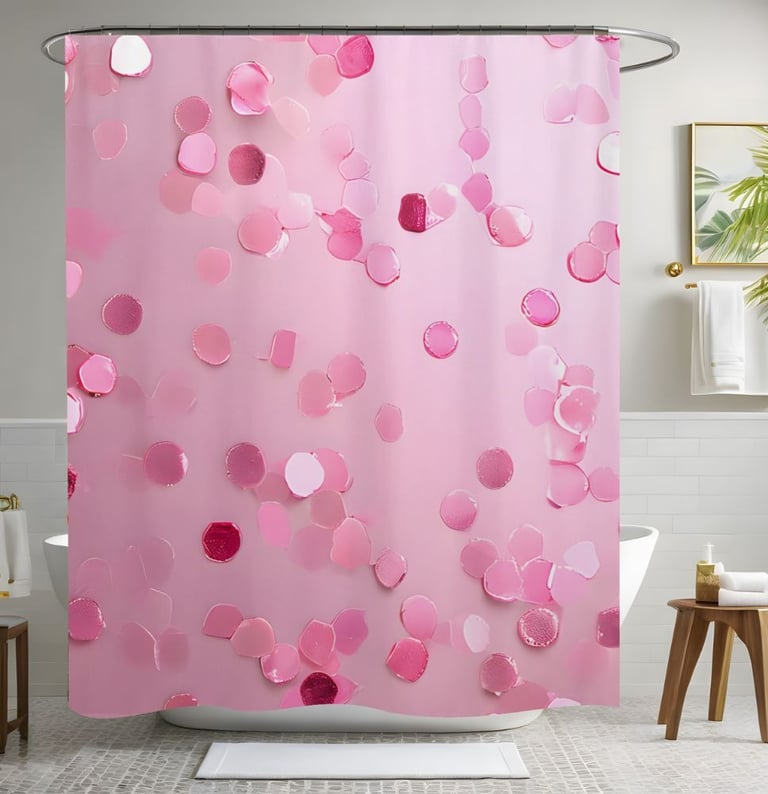 Bathe your bathroom in the light and airy beauty of our Soft Chic Pink Sequin Shower Curtain.
