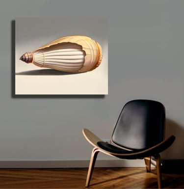 The high-quality print on metal brings out the intricate details and subtle shadows of the seashell, creating a unique, light-filled focal point.