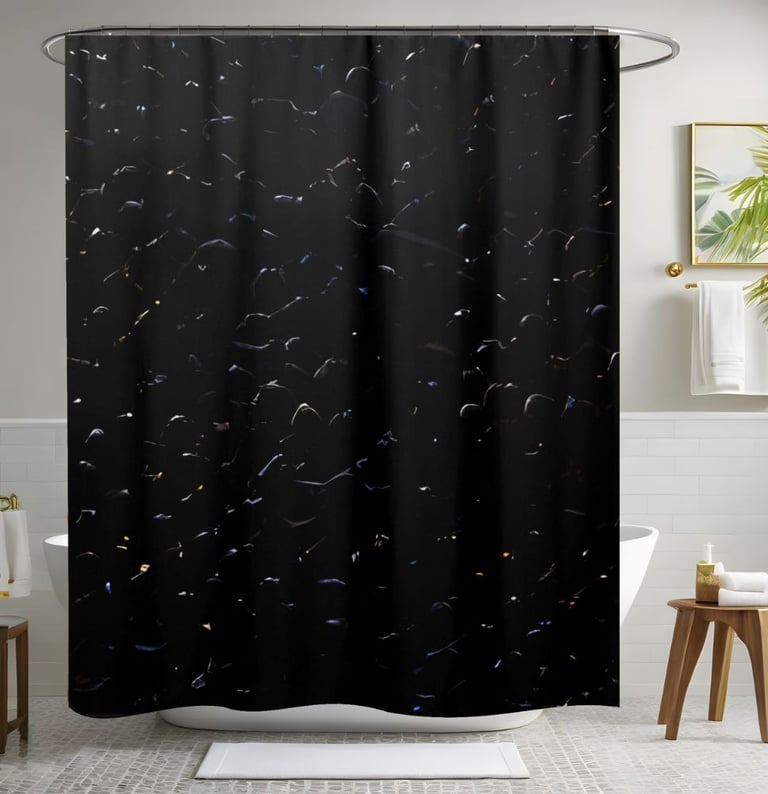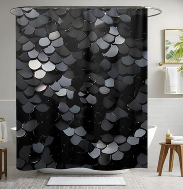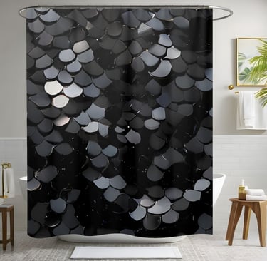 Experience the subtle texture and captivating visual play of our Stylish Shimmering Black Sequin Shower Curtain.