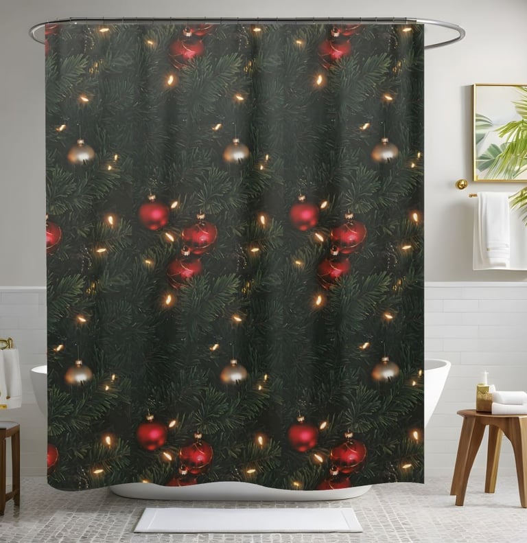Bring the holiday spirit into your bathroom with this beautiful traditional Christmas shower curtain.