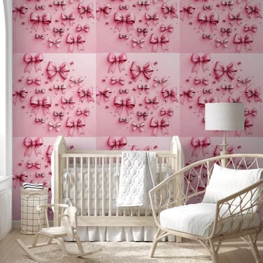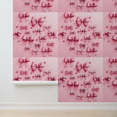Float away into a dream with this Charming Pink Bows & Glitter Dream wallpaper.