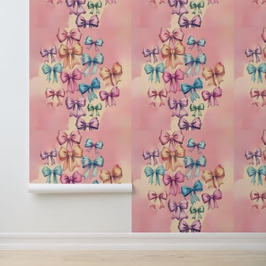 This Pastel Dream Bows Wallpaper features an array of colorful pastel bows, bringing instant charm and whimsy to your space.